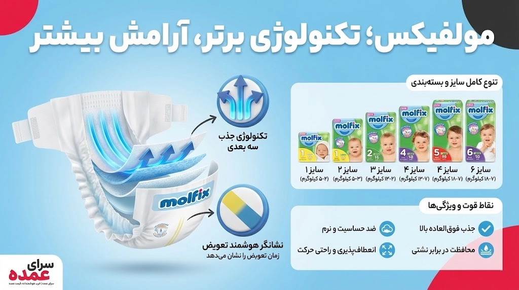 انتخاب پوشک مناسب برای نوزاد، یکی از اولین و شاید چالشبرانگیزترین تصمیماتی است که والدین جدید با آن روبرو میشوند. تصور کنید نیمهشب با صدای گریه نوزاد بیدار میشوید و متوجه میشوید که نمزدگی پوشک نه تنها خواب شیرین کودک، بلکه آرامش کل خانه را برهم زده است. یا بدتر از آن، با قرمزی و التهاب پوست لطیف فرزندتان مواجه میشوید که ناشی از کیفیت پایین الیاف پوشک است. اینجاست که دو نام بزرگ در بازار ایران خودنمایی میکنند: مولفیکس (Molfix) و مایبیبی (MyBaby).