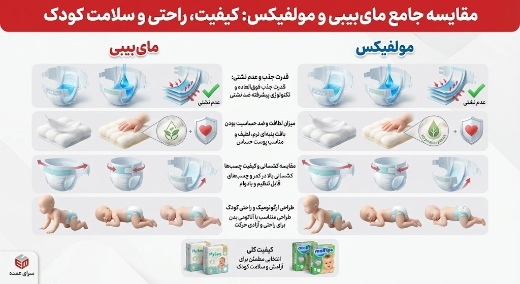 وقتی صحبت از کیفیت پوشک میشود، ما با چند فاکتور حیاتی روبرو هستیم که مستقیماً با سلامت و راحتی کودک در ارتباط است. بیایید بدون جانبداری و بر اساس بازخورد هزاران مشتری و تستهای فنی، این دو برند را مقایسه کنیم.