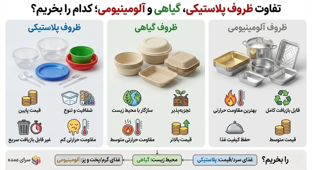 تفاوت ظروف پلاستیکی، گیاهی و آلومینیومی؛ کدام را بخریم؟