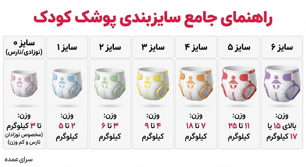 راهنمای جامع سایزبندی پوشک کودک (از سایز ۰ تا ۷)