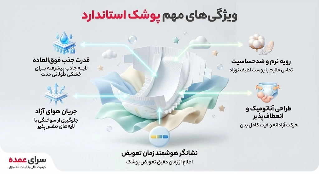 ویژگی‌های مهم پوشک استاندارد؛ ضد حساسیت و جذب بالا