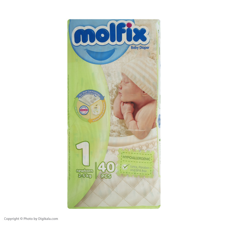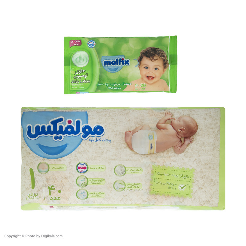 پک پوشک مولفیکس سایز 1 (40 عددی) به همراه دستمال مرطوب