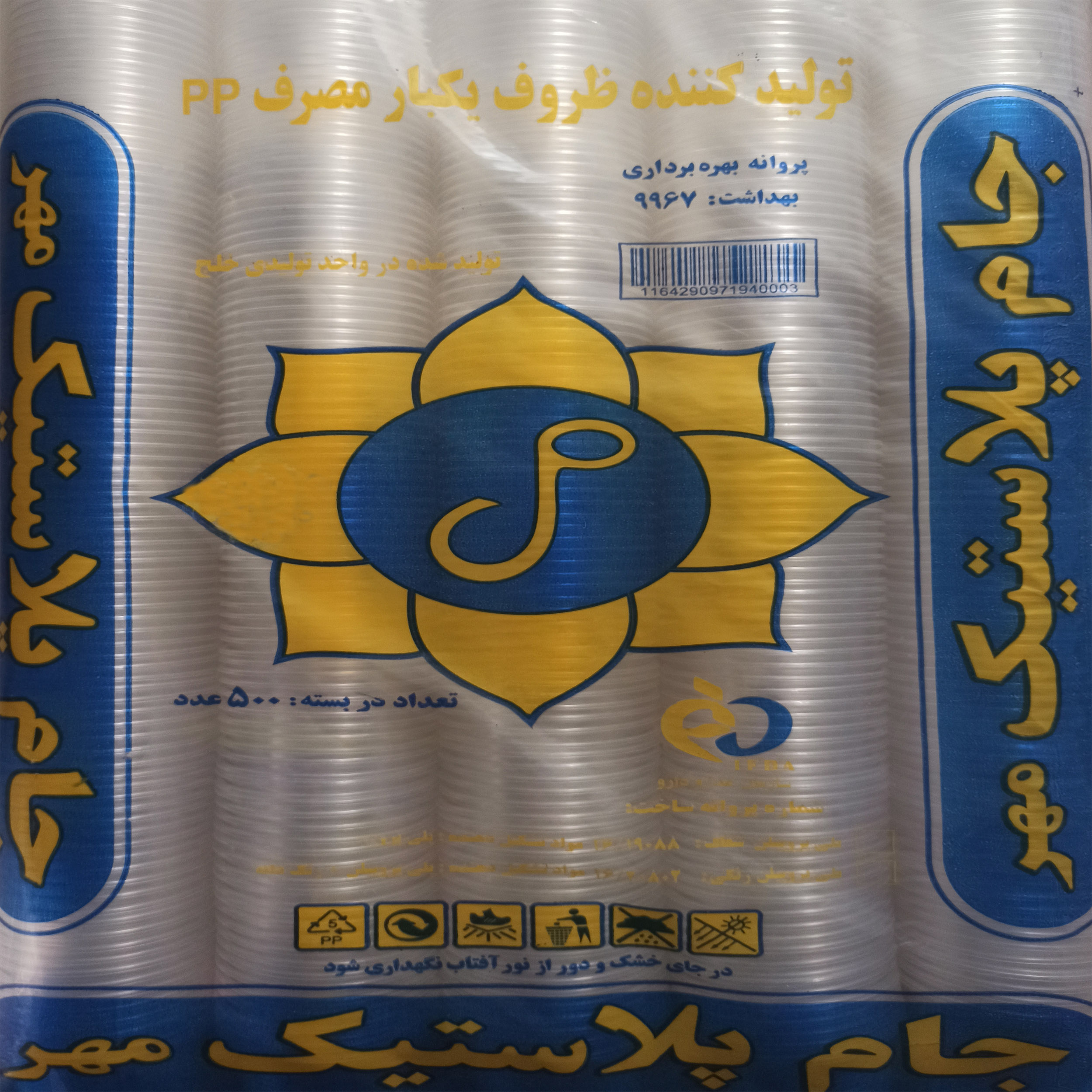 لیوان یکبار مصرف جام پلاستیک مهر (بسته 500 عددی)