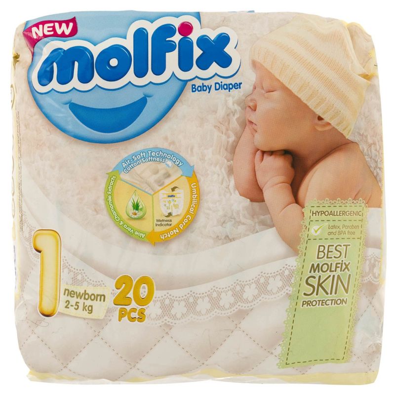 پوشک «مولفیکس» بسیار قابل انعطاف بوده و کاملا با فرم بدن کودک تطابق پیدا می کند و مانع از اذیت شدن کودک میگردند. این محصول که به صورت چسبی باز و بسته میشود، با چسبهای قوی و همچنین داشتن لوسیون نرم کننده در خود، بهترین حس ممکن را برای نوزاد و همچنین والدینش مهیا میسازد.