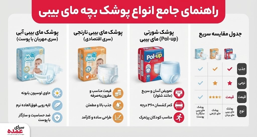 مای بیبی برای پاسخگویی به نیازهای متفاوت خانوادهها، محصولات خود را در دستهبندیهای مختلفی عرضه کرده است. شناخت دقیق این مدلها به شما کمک میکند تا بودجه خود را بهتر مدیریت کنید. در سایت سرای عمده، شما میتوانید تمام این مدلها را در بخش خرید عمده پوشک کودک و نوزاد مشاهده و مقایسه کنید.