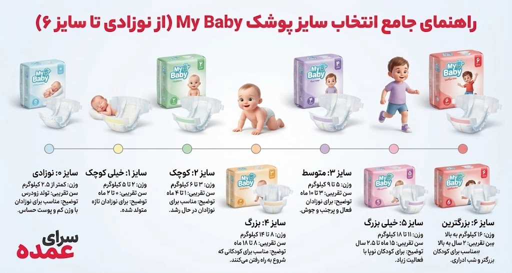 راهنمای جامع انتخاب سایز پوشک My Baby